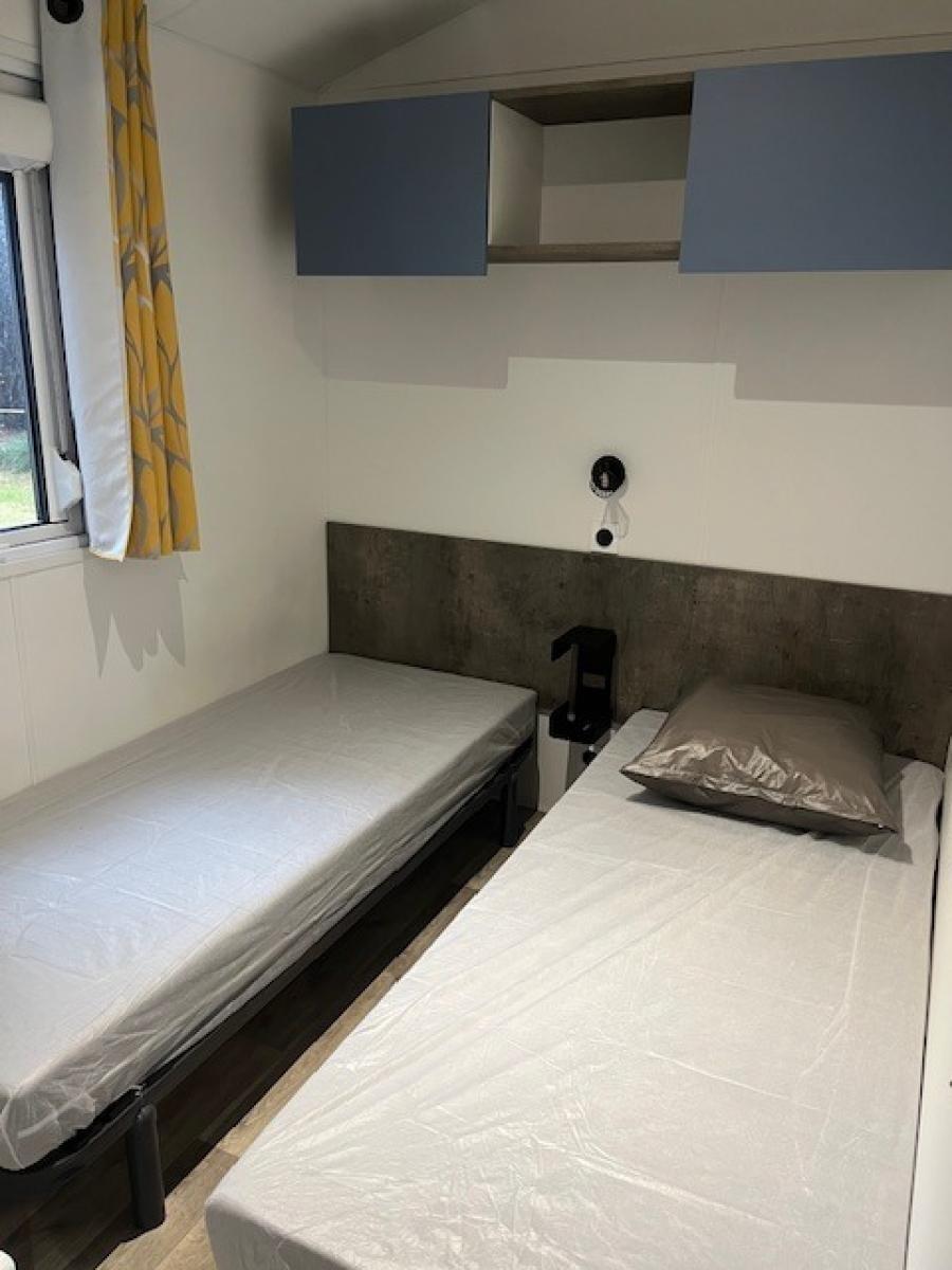 6 pers : Agréable pièce à vivre avec cuisine aménagée, 1 chambre avec un grand lit 140*190 et placards de rangement, 2 chambres avec 2 lits 80*190 et placards de rangement, Salle d’eau avec Douche et Lavabo, WC séparé, Radiateur électrique dans chaque pièce, Chauffe eau Gaz. Équipement électro ménager : Grand Frigo Congélateur, Micro-onde, TV. Pour plus de photos et/ou renseignements, contactez le camping l'estuaire. mail: contact@campinglestuaire.fr tel: 07 64 18 57 68