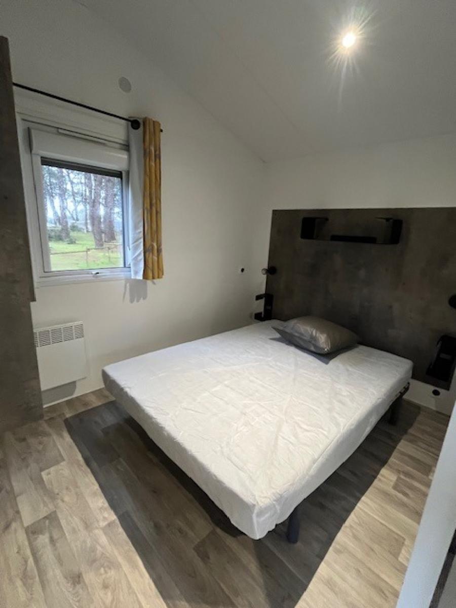 2 à 4 pers : 1 chambre avec 1 grand lit 140cm*190cm, 1 séjour/coin repas avec canapé convertible, cuisine équipée, Salle de bain avec cabine de douche, WC, Ballon d'eau chaude et Chauffage électrique. Extérieur : Terrasse couverte, salon de jardin. Surface 25m2 (20m2 intérieur + 5m2 terrasse)